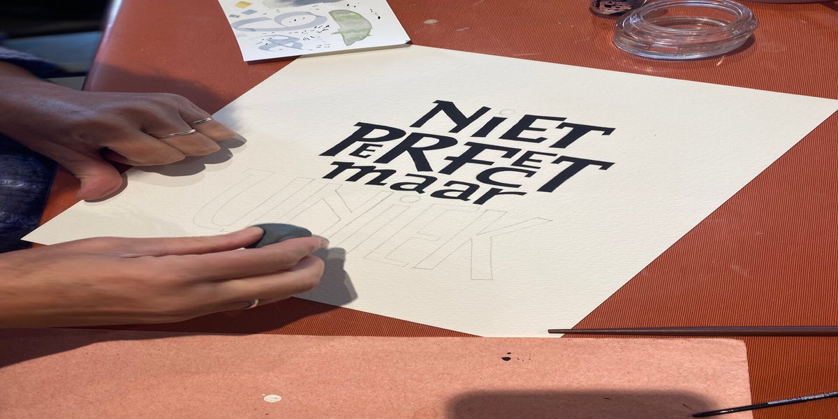 Toen onze drie dochters het huis uit waren en onze sportperikelen op een laag pitje kwamen te staan, gingen we op zoek naar een nieuwe hobby. Voor ons beiden kregen letters plots een heel andere betekenis. Marnix kapt de letters in stenen en ikzelf verdiepte mij in de kalligrafie en het handletteren.