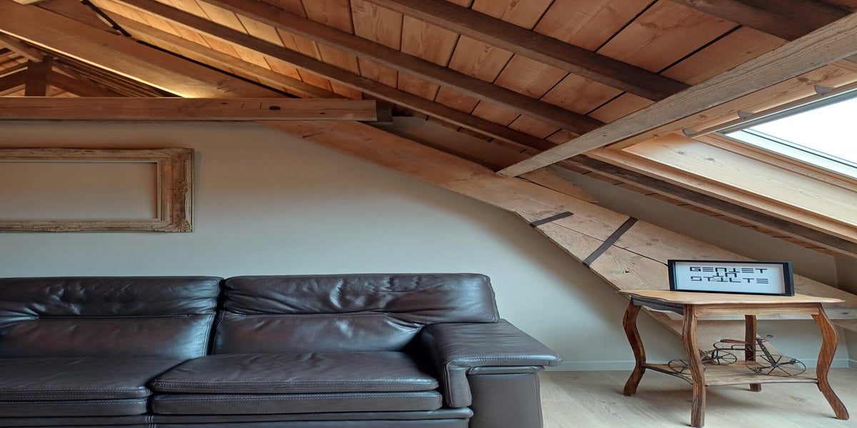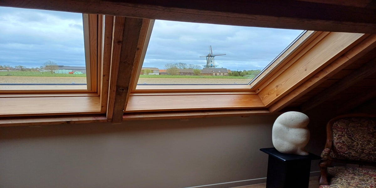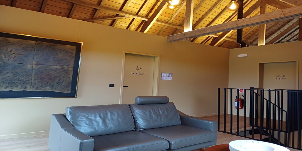 Deze drie kamers zijn gelegen op het eerste verdiep, in het rechtergedeelte van de B&B. Ze hebben toegang tot een gezamenlijke, gezellige zithoek onder het authentieke dakgebinte. Vanuit de zithoek heb je een prachtig zicht op de Couchezmolen.
